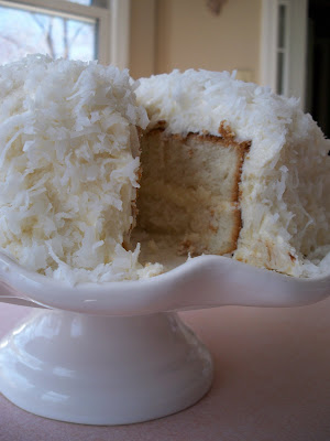 Vanilla Cake (out of a box) + Vanilla Icing (from scratch) + Angel Coconut Flakes = a pretty good cake, if I say so myself, I just wish I had someone to share it with!